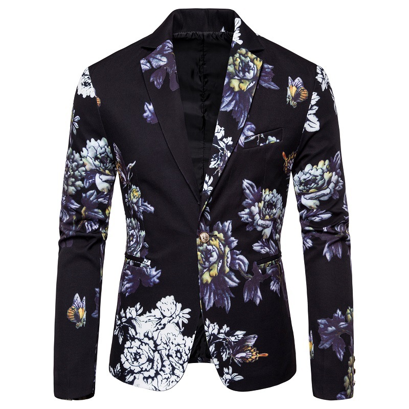 Men's Business Slim-Fit Fashionable Printed Lapel Suit Jacket