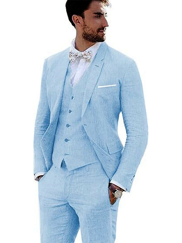 Features: Slim fit cut, fused interlining construction, regular thickness, suitable for summer wear